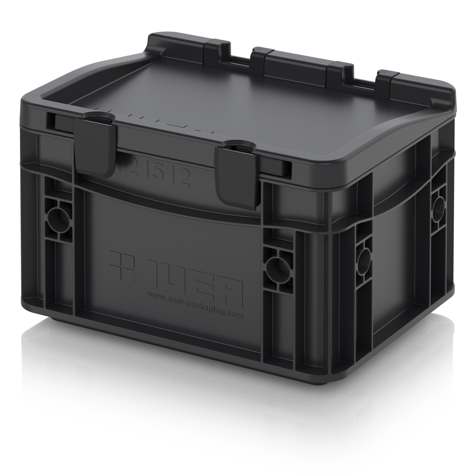 Евроконтейнер с ESD-защитой производства компании AUER Packaging изготавливается из антистатической пластмассы, что делает его пригодным, в частности, для надежного хранения и транспортировки электронной продукции.