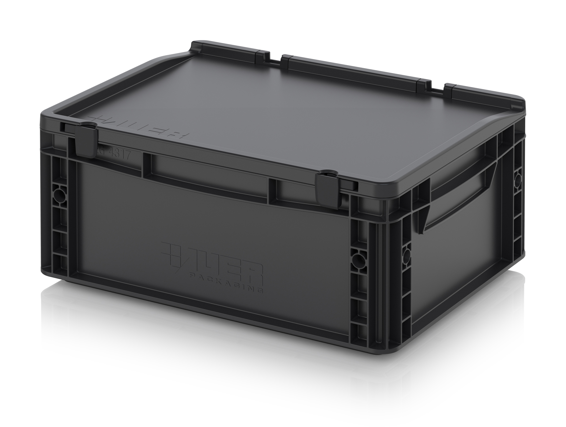 Евроконтейнер с ESD-защитой производства компании AUER Packaging изготавливается из антистатической пластмассы, что делает его пригодным, в частности, для надежного хранения и транспортировки электронной продукции.