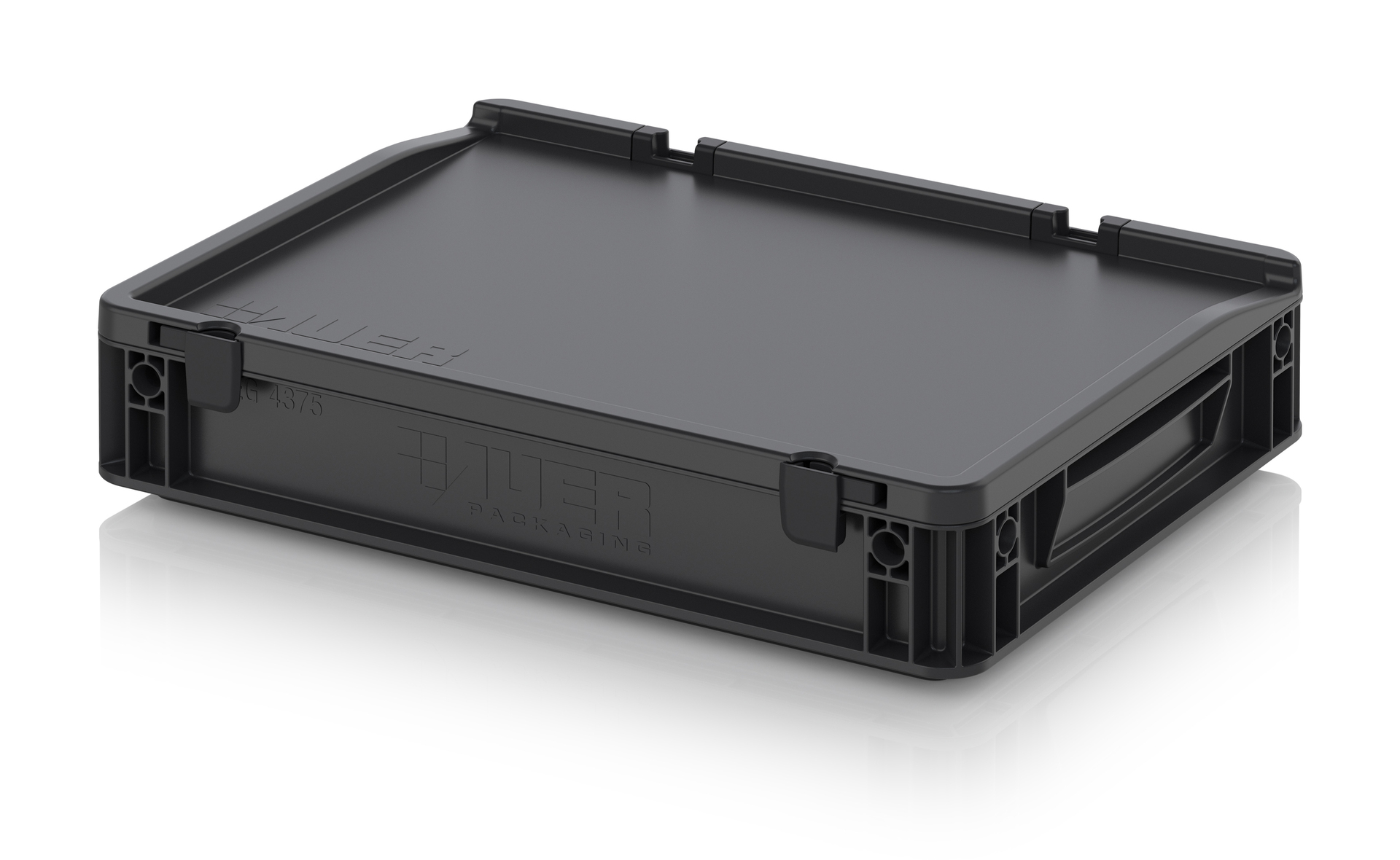 Евроконтейнер с ESD-защитой производства компании AUER Packaging изготавливается из антистатической пластмассы, что делает его пригодным, в частности, для надежного хранения и транспортировки электронной продукции.