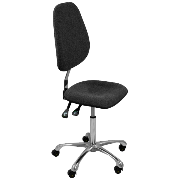 На выбор возможна комплектация антистатическими ножками или антистатическими колесиками. Дополнительно можно заказать антистатические подлокотники, опорное кольцо для ног. Имеется регулировка угла наклона сиденья и угла наклона спинки.