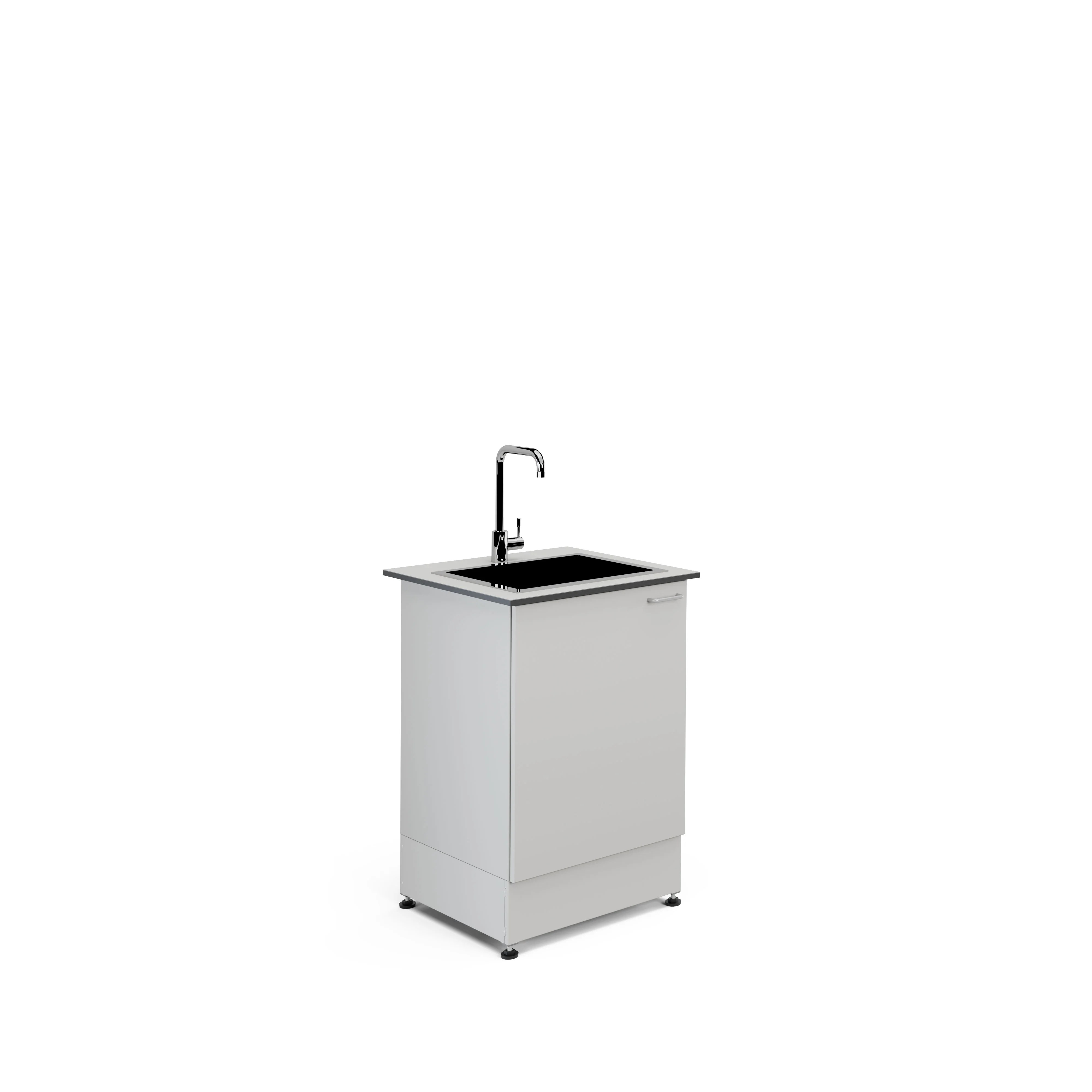 Стол-мойка состоит из металлического каркаса с установленной дверью и комплекта сантехнических принадлежностей.