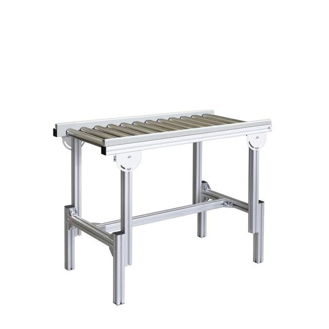 Возможно антистатическое оснащение конвейера, его комплектация прямыми, поворотными, раздвижными секциями. Конструкция может быть дополнена остановочным упором, бортами, чтобы не допускать падения грузов с линии.