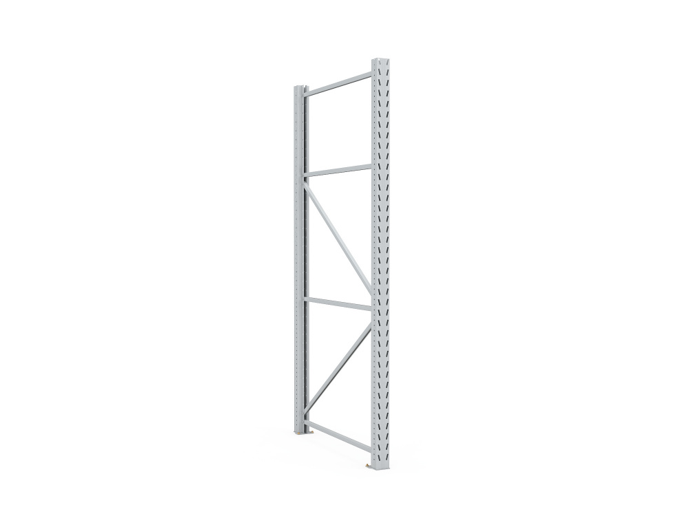 • Рама стеллажа состоит из двух стоек, комплектов диагональных и горизонтальных связей, подпятников (для анкерного крепления к полу) и крепежа