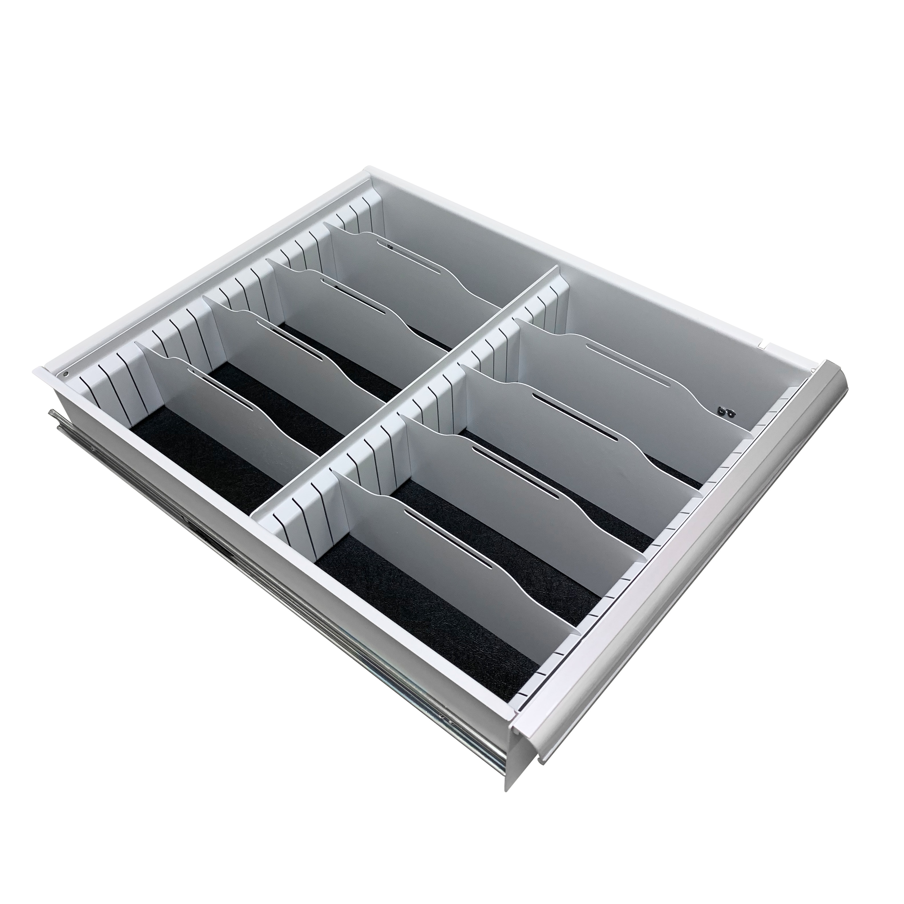 Используется для упорядоченного хранения комплектующих. Конструкция поперечных перегородок, которые имеют прорези по всей длине с шагом 20 мм, позволяет выстроить продольные перегородки таким образом, чтобы обеспечить оптимальный размер ячеек для разных по габариту материалов. Максимальное количество ячеек при использовании полного комплекта перегородок — 10 шт.